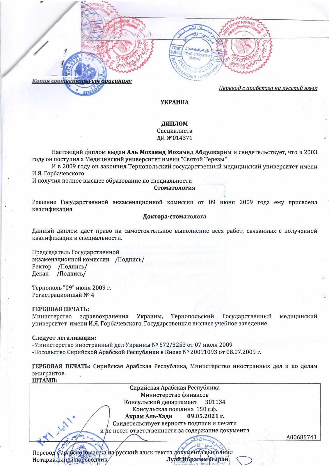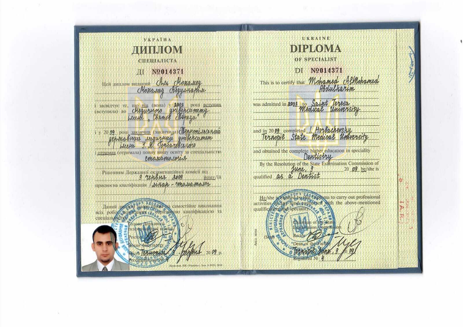2009 — Тернопольский государственный медицинский университет им. И.Я.Горбачевского Стоматология