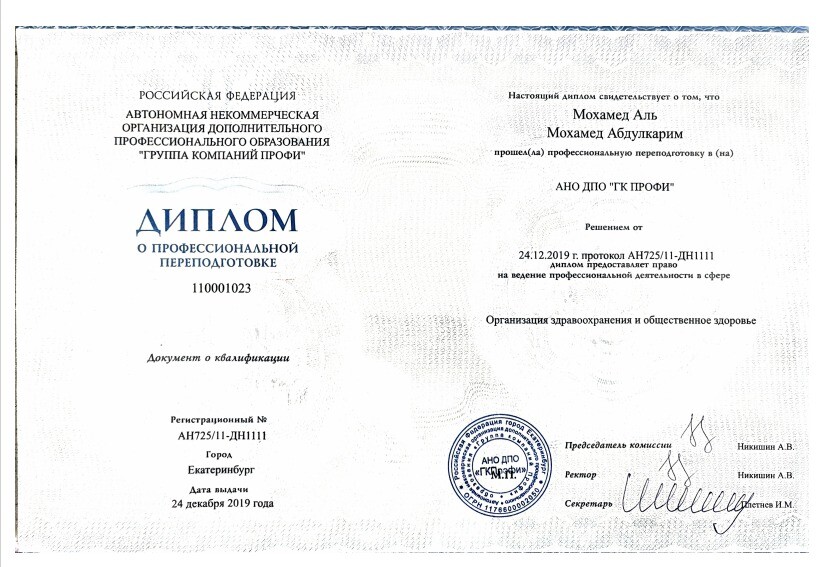 Мохамед Абдулкарим Аль Мохамед заботится о здоровье и комфорте своих пациентов, стремясь обеспечить им красивую и ровную улыбку. Запишитесь на прием!